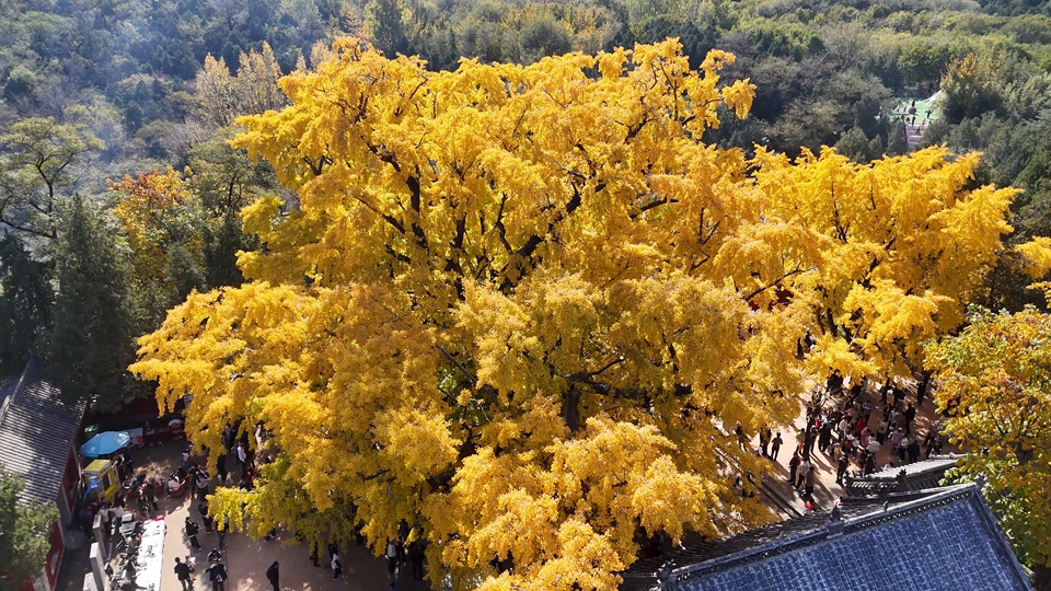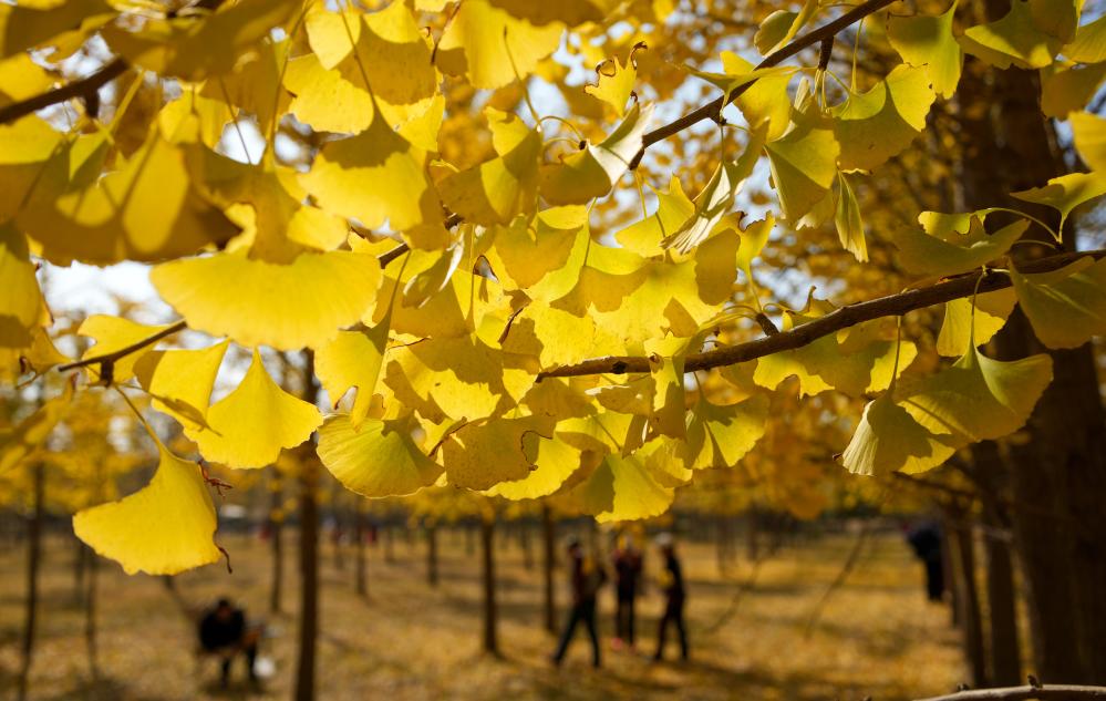 济南泉城公园银杏叶铺金 市民游客打卡赏冬景