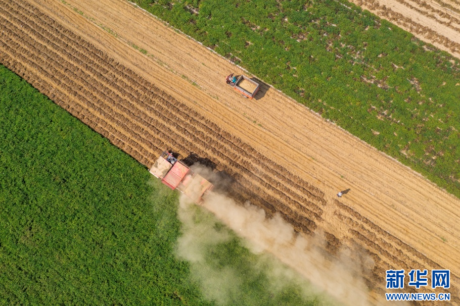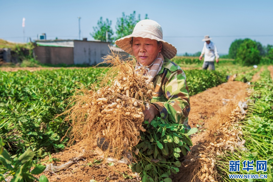 在日照市莒县夏庄镇,村民正在收获花生。新华网发(陈光金 摄)