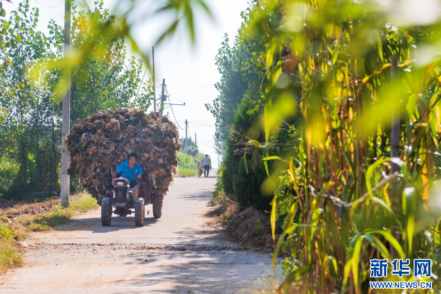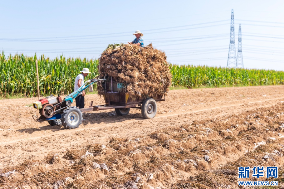 在日照市莒县夏庄镇,村民正在运输花生。新华网发(陈光金 摄)