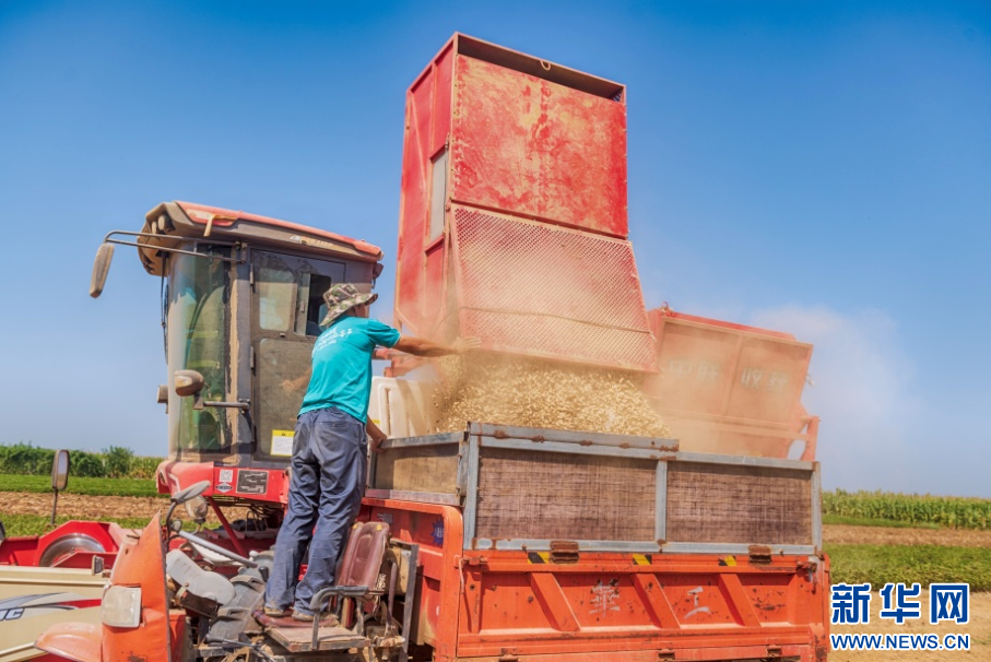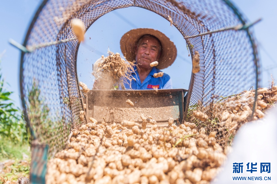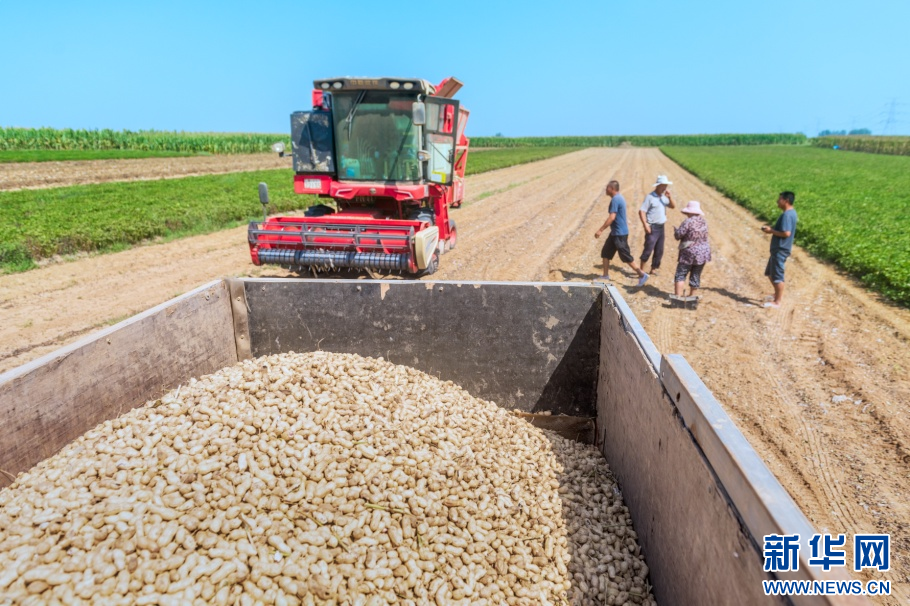 脱粒后的花生正在装车。新华网发(陈光金 摄)