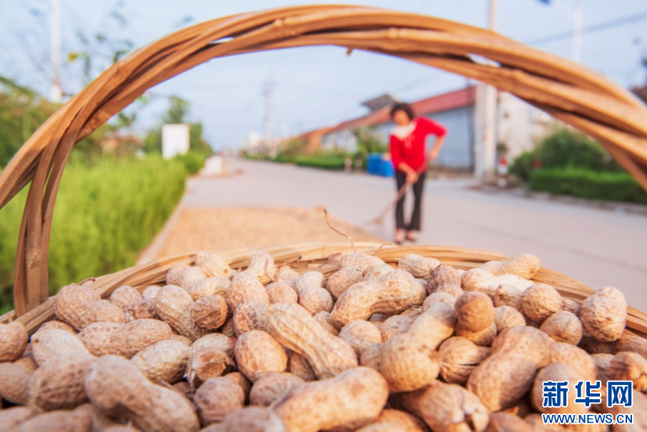 在日照市莒县夏庄镇,村民正在晾晒花生。新华网发(陈光金 摄)