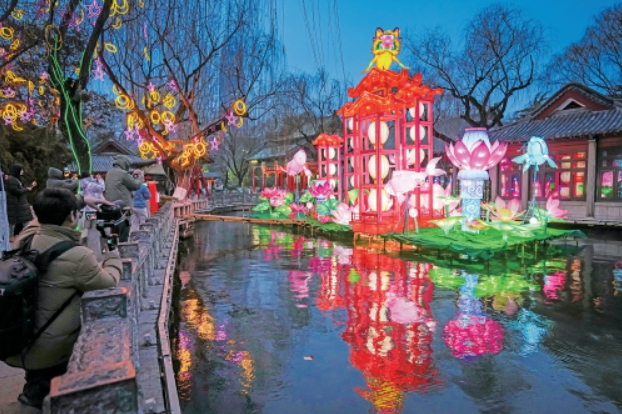 “诗画泉城”板块位于景区北门至景区中部区域,灯组以济南的自然风光和人文历史为主题,融入诗画元素,通过花灯的形式展现济南环保与生态建设的巨大成就,反映人居环境与城市风貌的蒸蒸日上,让人们在欢声笑语中迎接龙年的到来。