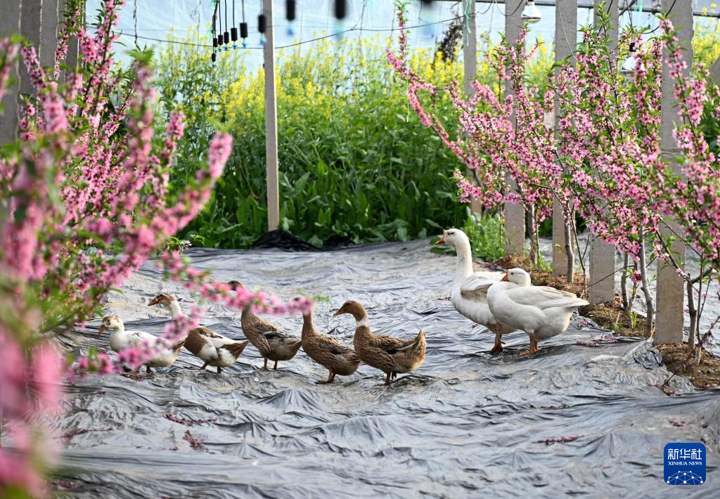 近年来,山东省平度市白沙河街道不断推广禽果共生种养殖技术,在果树大棚内养鸡、鸭、鹅等家禽,实现家禽吃草、捕虫,果树种植不施化肥的生态共生效应。新华社记者李紫恒摄