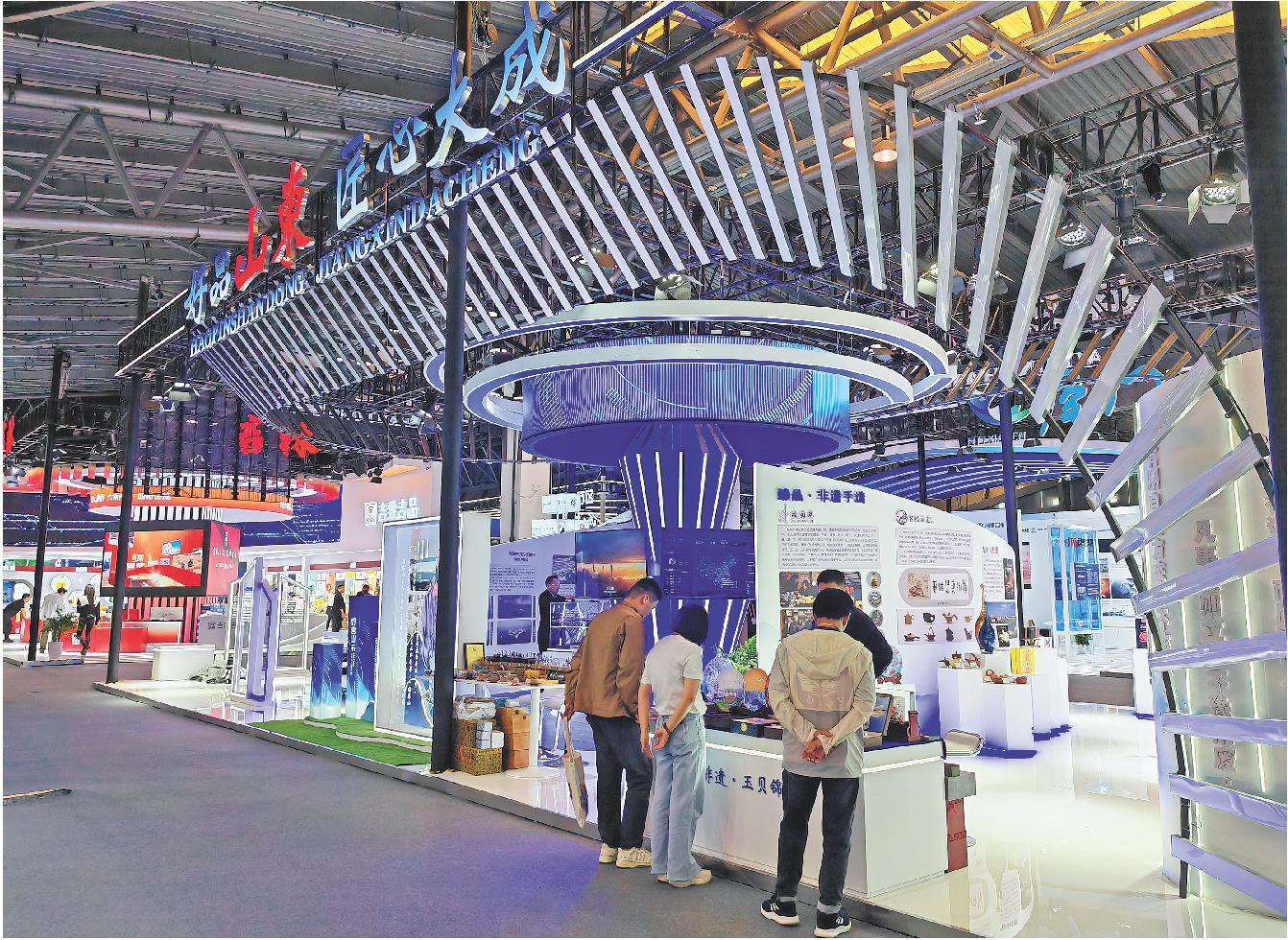 在线下地方展区,山东馆精彩亮相。山东馆参展面积180平方米,将“出好品、造精品、筑匠品”理念贯穿布展,分为智品·新质创造、匠品·大国重器、臻品·非遗手造、优品·齐风鲁韵四个部分。