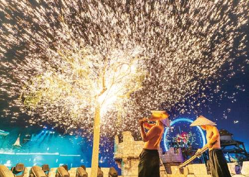 大型国风实景铁花秀《梦回西楼》、傣家泼水狂欢大巡游、摩天轮落日音乐派对,融创乐园暑假三大主力活动齐亮相。同时,融创乐园还制作了高15米、宽37米的赛博风天籁使者巨型灯组;在融创乐园内还会有各种萌宠动物气模以及夏日微醺、炫酷国潮、落日美食等各种主题集市……吃喝玩乐,应有尽有。