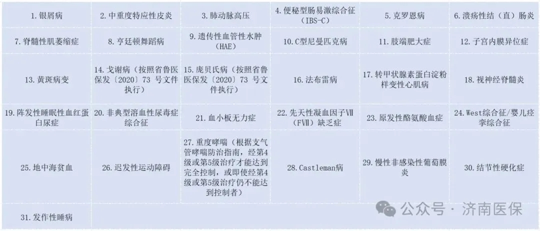 自2024年9月起,济南市医保部门进一步扩大门诊药品单独支付病种范围,新增视神经脊髓炎、阵发性睡眠性血红蛋白尿症、非典型溶血性尿毒症综合征等14个门诊药品单独支付病种,调整后济南市基本医保门诊药品单独支付病种达31种。此举将进一步降低济南市参保患者就医负担,更好地满足参保群众就医需求。