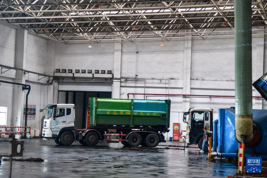 9月19日,在山东启迪济能环保科技有限公司,运输生活垃圾的车辆在园区内行驶。新华社记者 朱峥 摄