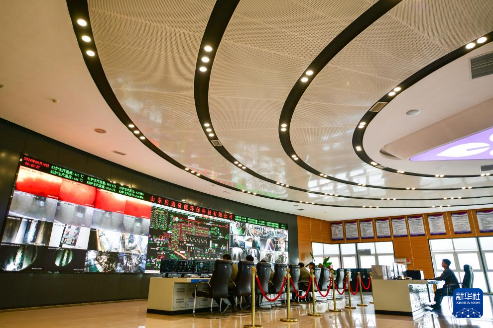 9月19日,在山东启迪济能环保科技有限公司,工作人员在总控制室内监控生产运行。新华社记者 朱峥 摄