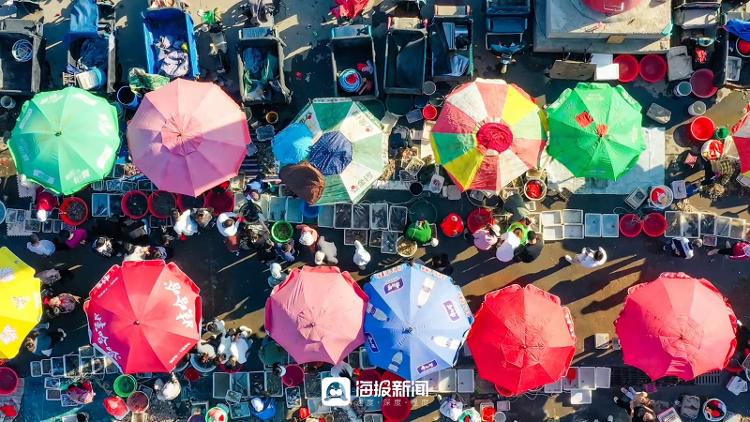 “快来看看新鲜的虾婆,便宜卖啦。”“大虾12元就剩这些了,打包带走的话10元一个。”商贩们叫卖声此起彼伏。