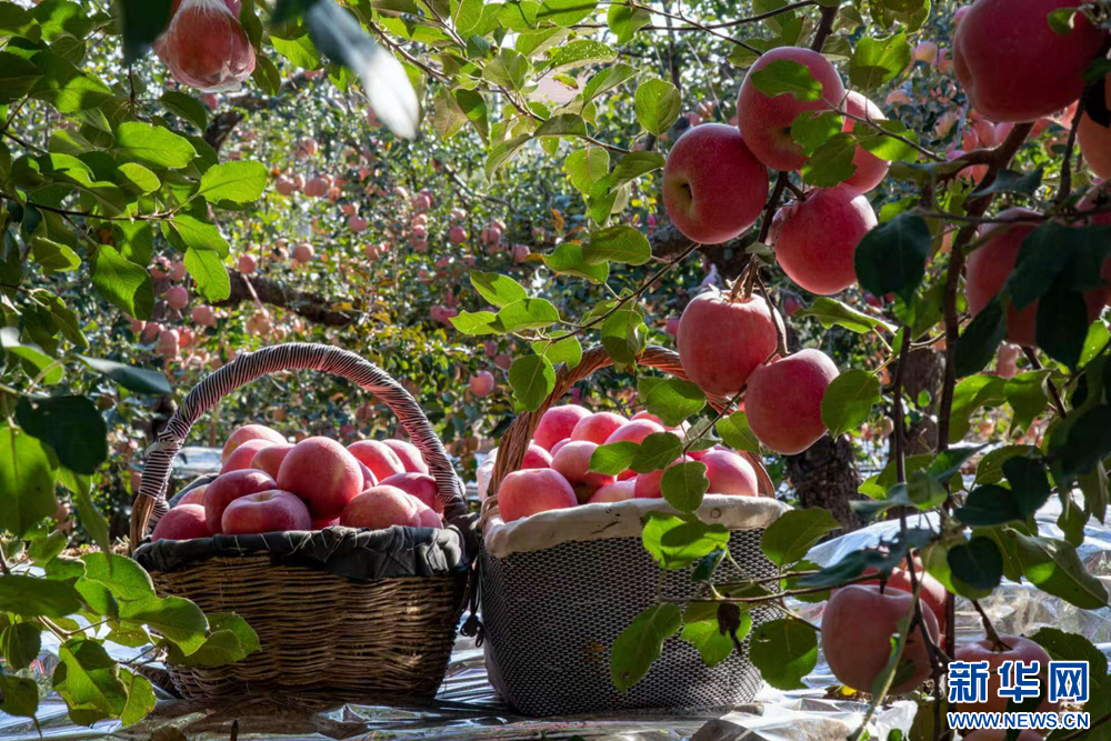 刚采摘下来的苹果。新华网发 (刘卫芳 摄)
