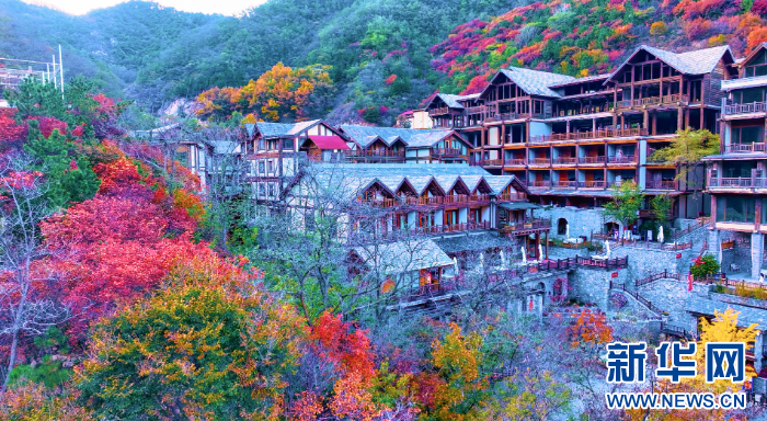 景区内黄栌、槭树、银杏等树叶五彩斑斓,透出浓浓秋意。新华网发