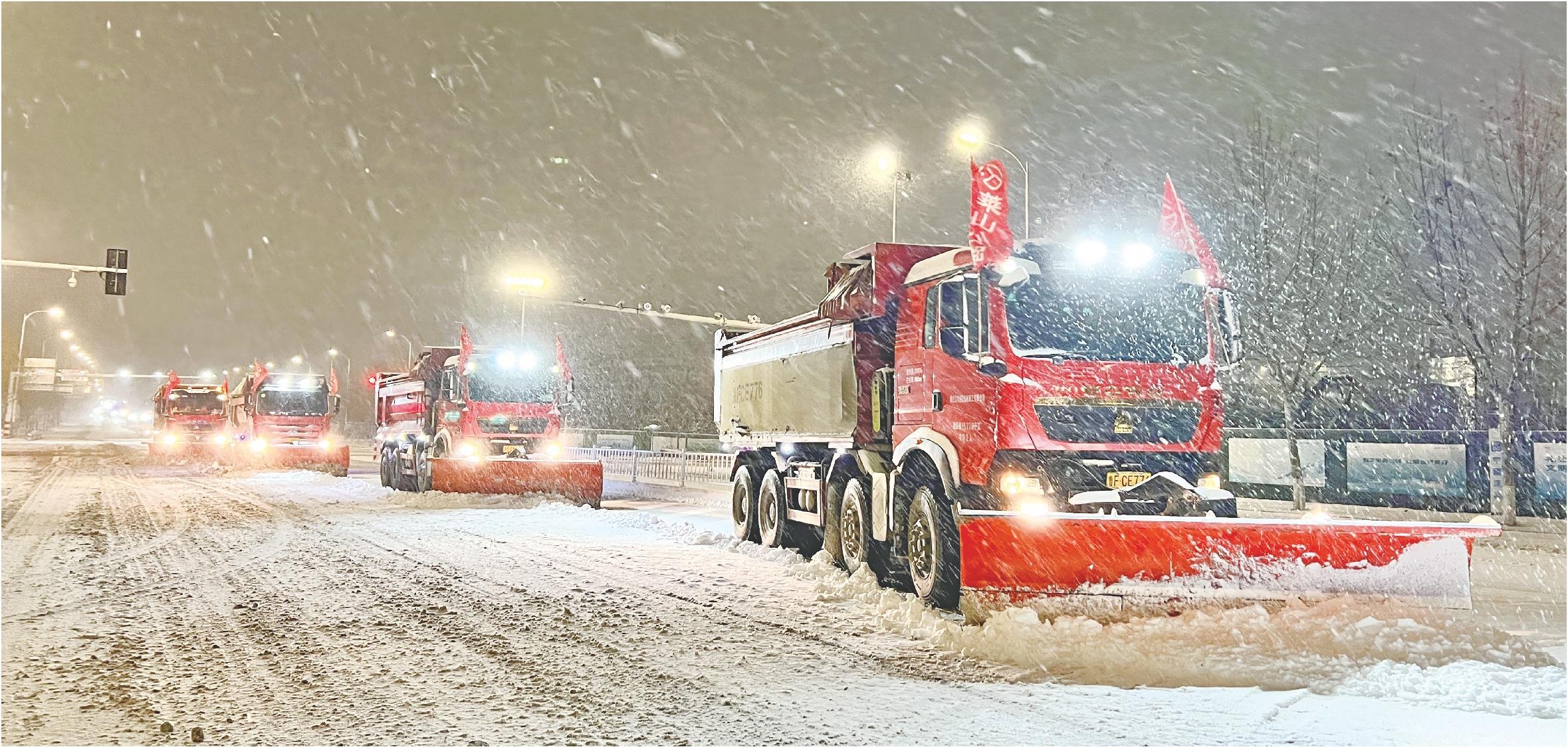 11月26日,2024年的第一场雪如约而至,山东烟台清雪防滑工作的大幕也随之拉开。据了解,这个冬天,烟台市继续推广“清雪滚刷+推雪铲+小型清雪机械+人工辅助”相结合的清雪作业方式,足额配备专业清雪防滑机械装备,完善道路重要节点的应急分队配置,并适时组织清雪防滑专业人员和专业清雪设备的应急演练,提升应对突降大雪和各类突发情况的处置能力。与往年相比,今年烟台市更加注重重点点位的保障,在近百个关键点位部署应急保障车,一旦出现雪情,可以及时对路口、坡道进行应急处理,保障市民出行。