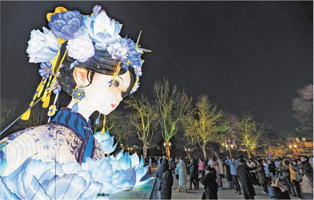 春节假期以来,济南大明湖景区“湖畔雨荷”花灯每天吸引上万名游客参观打卡。□记者毕胜报道