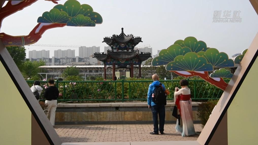 4月的山东菏泽,牡丹盛放。曹州牡丹园内,各地游客赏花观景、体验民俗。