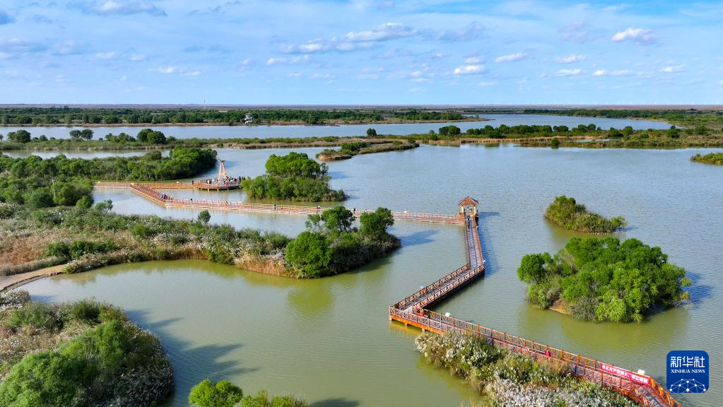 10月20日拍摄的山东东营黄河口湾区湿地景色(无人机照片)。