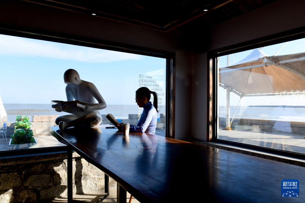 10月22日,市民在位于山东日照张北湾的海洋美学馆城市书房看书。