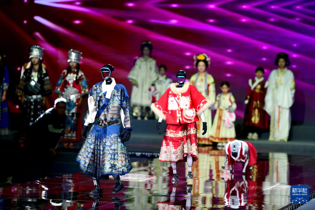 11月22日,机器人在2025秋冬汉服新品发布会上走秀。