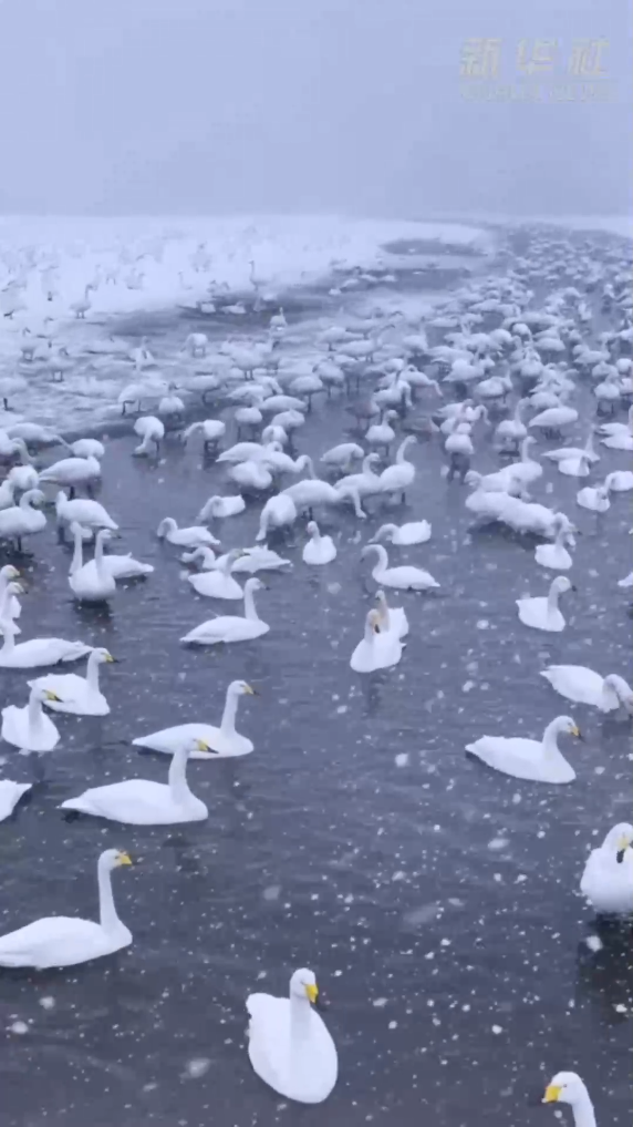 寒冬降临,西伯利亚寒流与黄海暖湿气流在这里相遇,造就了山东著名的“雪窝子”。作为大天鹅在我国越冬的重要栖息地,威海眼下“接待”大天鹅7000只左右。