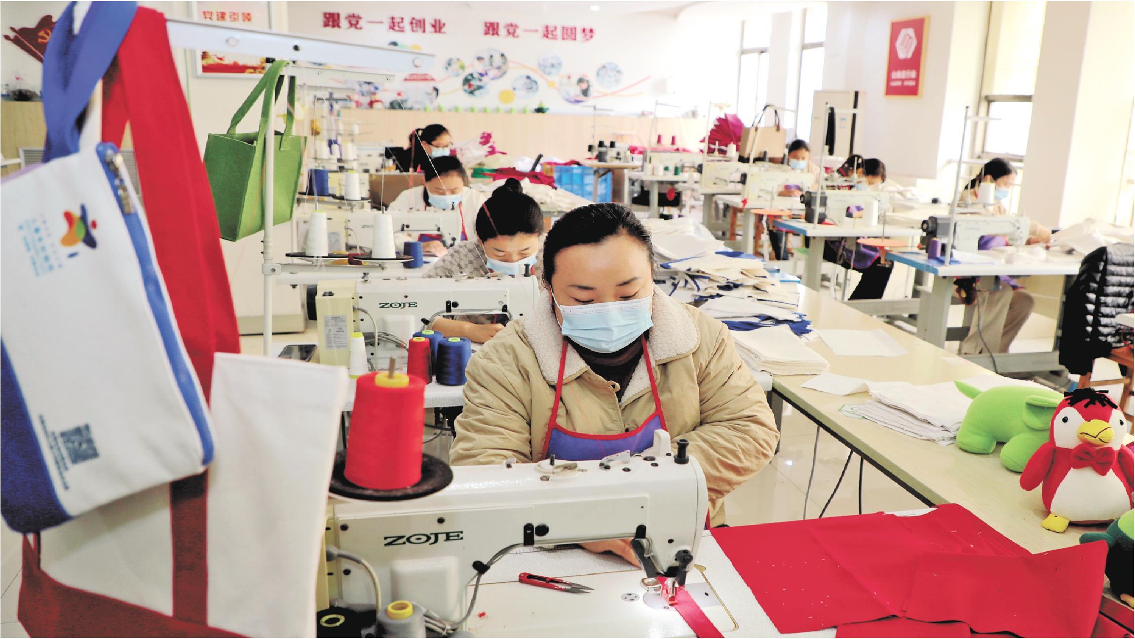 近日,在东营经济技术开发区锦华社区的“共富工坊”里,居民付绍芳正低头细心地为顾客修改一条裤脚,手边叠放着几件待缝补的衣物。共富工坊不仅设有“缝纫角”,还提供公益理发、物业维修、社区团购等服务,成为居民解决日常琐事的“便民服务站”。
