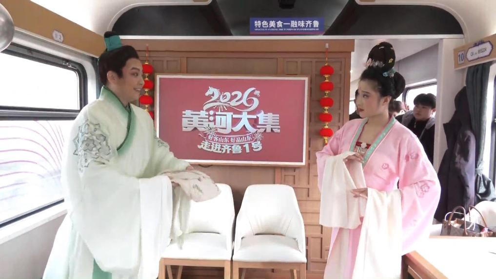 春运大幕即将开启,在山东济南,“齐鲁1号”旅游列车化身移动年货大集。