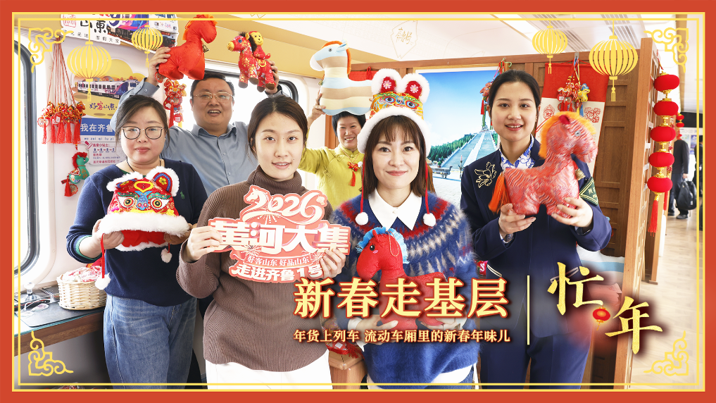 人潮奔涌,年味渐浓。装满新春烟火气的“齐鲁1号”旅游列车鸣笛启程,非遗手艺、特色年货、新春祝福一同“登车”,记者也跟着上了车。