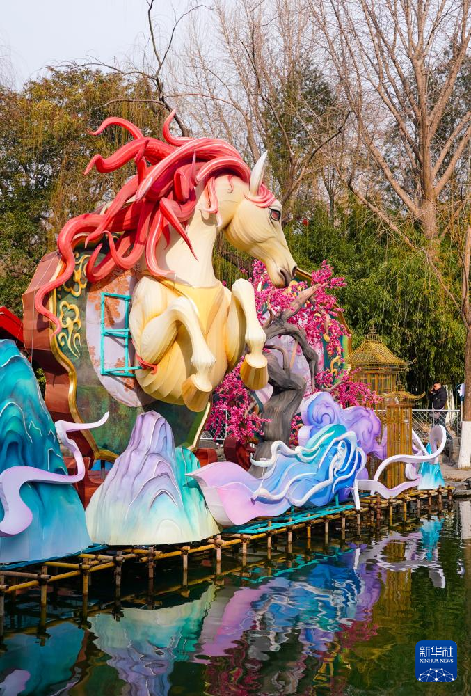 这是2月9日在济南天下第一泉风景区拍摄的一组大型彩灯。新华社记者 徐速绘 摄