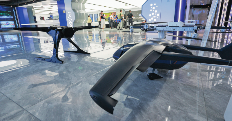在位于无锡的长三角空间信息数字产业特色示范园,观众在观摩企业设计生产的无人机模型 (2024 年 9 月 9 日摄) 杨磊摄 / 本刊