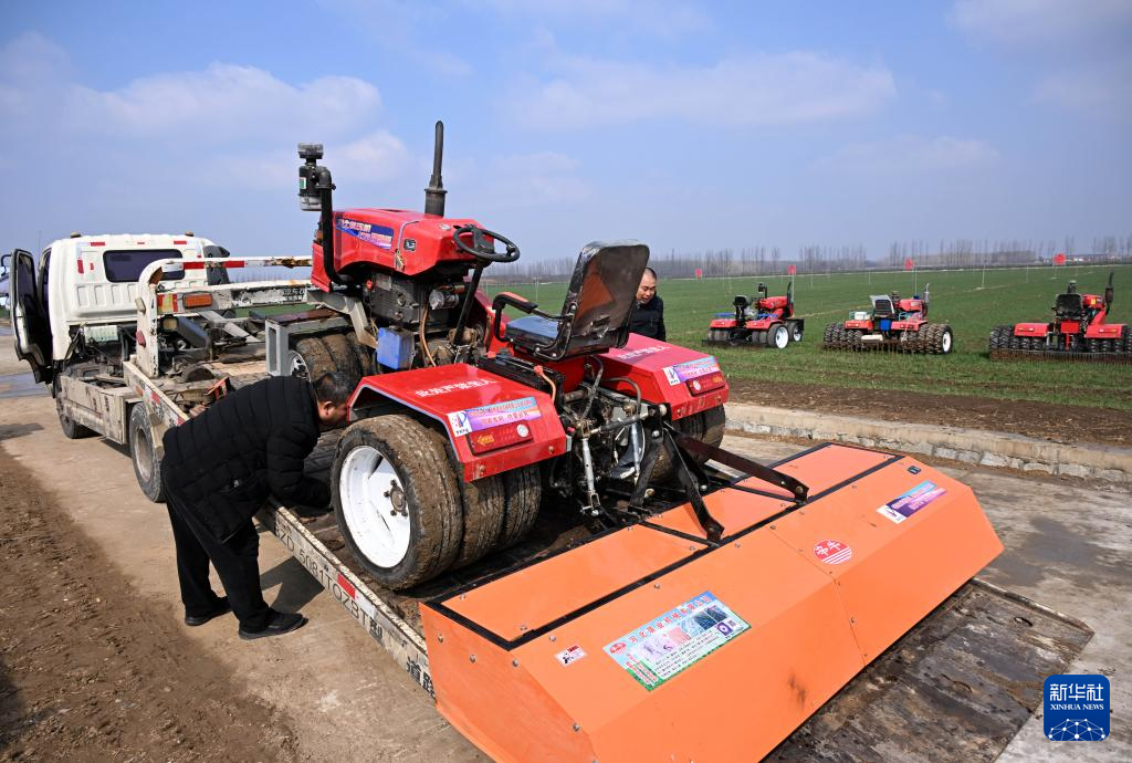 3月6日,在青岛市即墨区蓝村街道壮武村,农机手查看春管设备。新华社记者 李紫恒 摄
